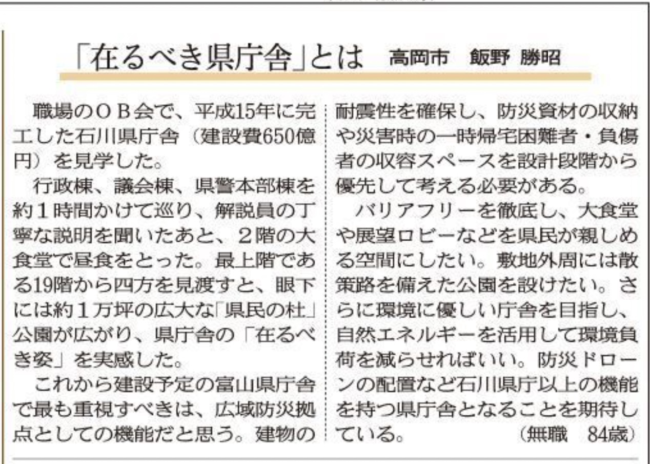 『〔声の交差点〕「在るベキ県庁舎」とは』(2025年11月14日、北日本新聞)